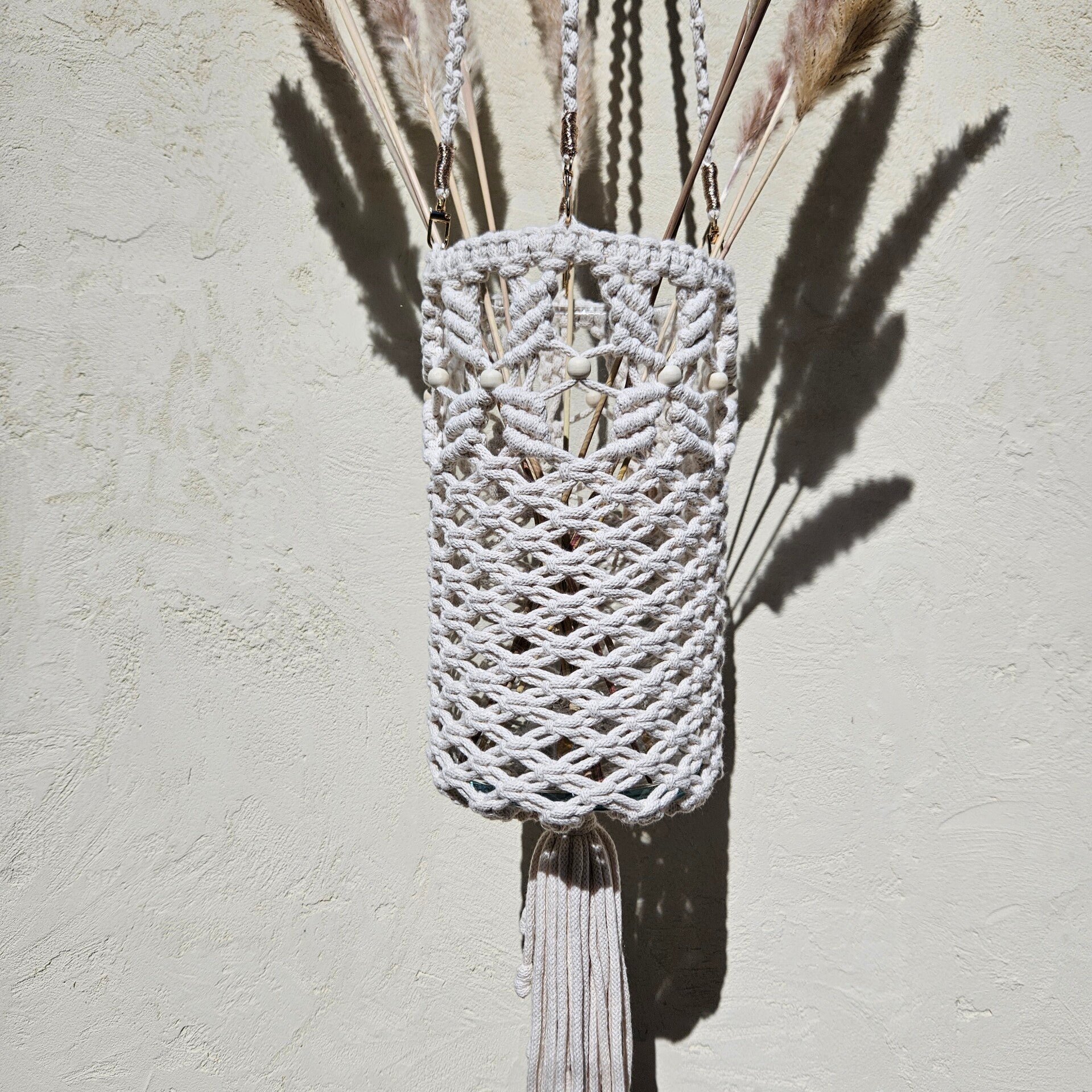 Ajoutez une touche d'élégance bohème à votre intérieur avec notre photophore/vase suspendu. Tressé avec soin, cet article artisanal est idéal pour mettre en valeur des fleurs séchées, apportant une atmosphère chaleureuse et naturelle à votre espace de vie.